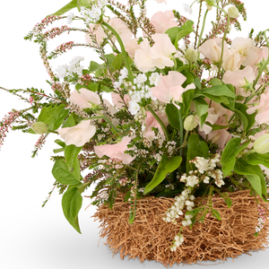 Celebrate spring or the warmth of motherhood with our enchanting Bird's Nest Floral Arrangement, a stunning art piece that combines the delicate beauty of nature with the love and care only a mother can provide. Designed to resemble a cozy nest, this unique arrangement is filled with soft, vibrant spring blooms and whimsical greens, all nestled together in a handmade woven nest.